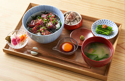 富山県産コシヒカリ使用まぐろの醤油麹漬け卵黄和え丼