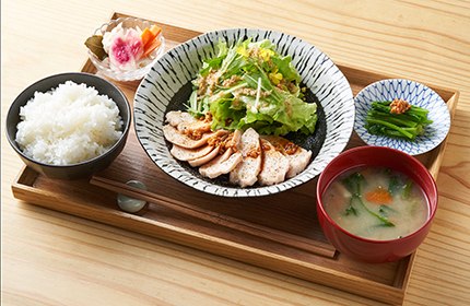 鶏肉の醤油麹蒸しとサラダ(季節によりサラダの内容や量が変動します)